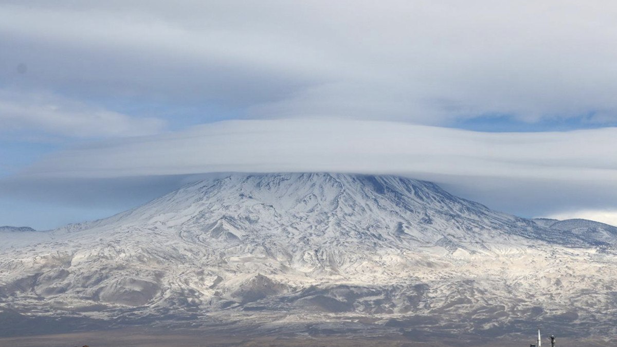 Dağın üst kısımlarını ve zirvesini, halk arasında “şapka” diye bilinen mercek bulutu sardı.