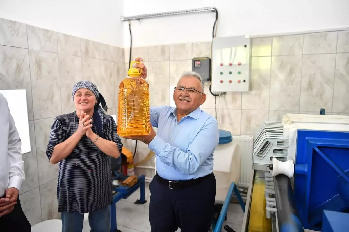 Başkan Büyükkılıç, aspir yağı üretim tesisindeki incelemelerinin ardından açıklamalarda bulunarak, “İncesu’muzun Süksün kasabasındayız. Burasının gönül insanlarına sevgilerimizi, saygılarımızı sunuyoruz. Üreten Ayşe Hanım’a da ayrıca teşekkür ediyor, minnet duyuyoruz. Ürettiği aspir yağı, markasını da almış. Bir iş kadınının bu kadar üretken olması ve bu alanda adeta bölgeye hitap eden bir yaklaşım içerisinde günde 8 ton yağ üretiyor. Dolum makinesi istedi, o da bizim hediyemiz olsun dedik” ifadelerini kullandı.