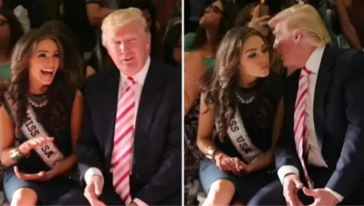Trump takım elbise giyerken, Culpo muhafazakâr bir elbise ve Miss USA kuşağı takmıştı. Bir fotoğrafta, Trump’ın Culpo’nun kulağına bir şeyler fısıldadığı görülüyor.