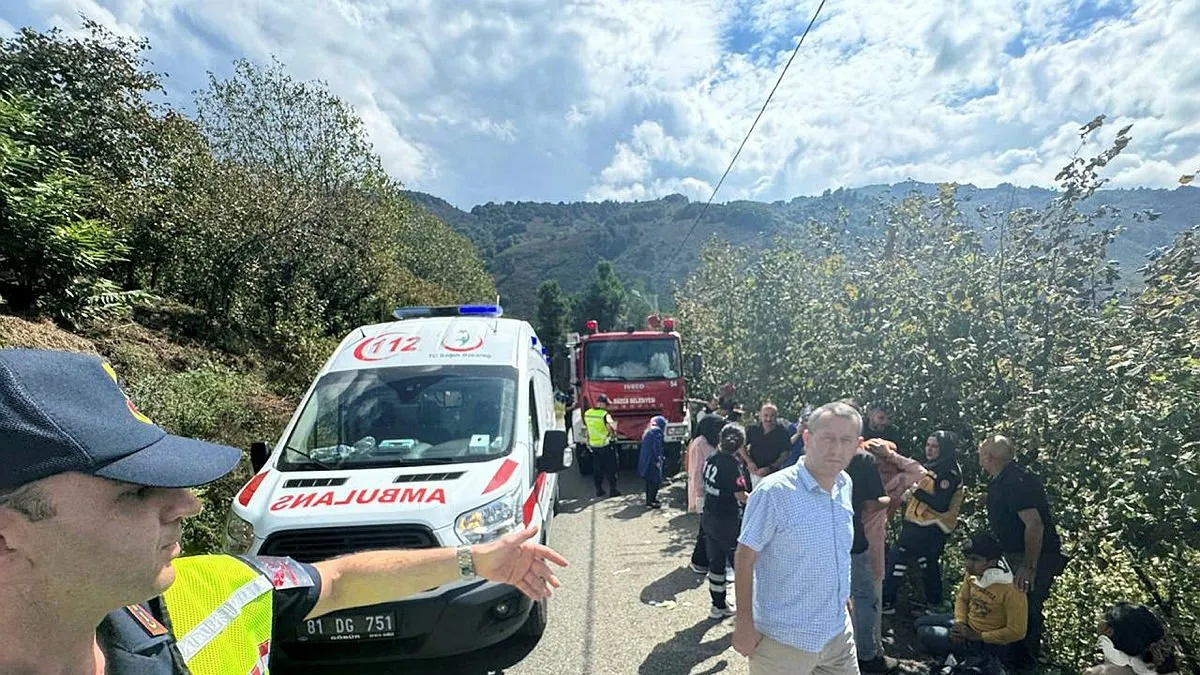 Kaza, saat 11.30 sıralarında Cumayeri ilçesi Harmankaya köyünde meydana geldi. Köy içinden fındık bahçesine giden henüz sürücüsü tespit edilemeyen içinde mevsimlik fındık işçilerinin bulunduğu minibüs, kontrolden çıkarak yaklaşık 50 metrelik uçuruma devrildi.