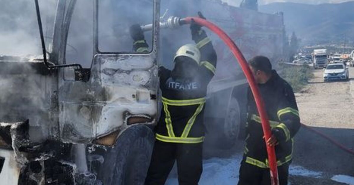 Yanan hafriyat kamyonu kullanılamaz hale geldi.