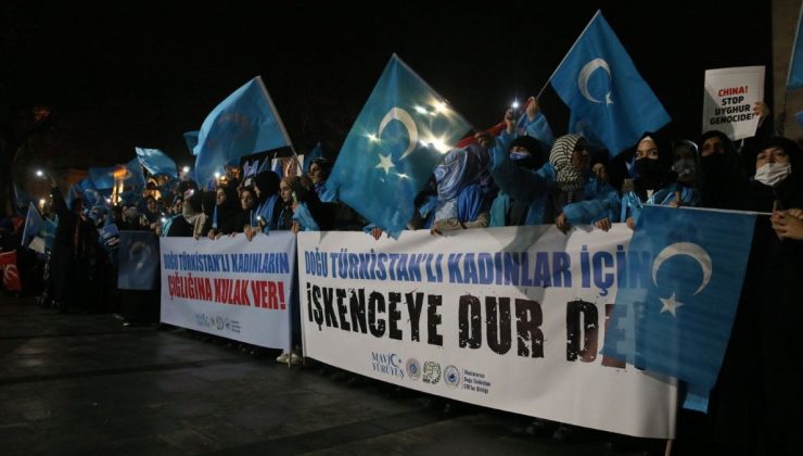 Açıklamada ayrıca, “Sadece Doğu Türkistan’ın Hoten bölgesinde 15 bin kadının tutulduğu bir kamp olması çok sayıda kadının sesi olmamız gerektiği gerçeğini bir kez daha göstermektedir. Kamplarda; haksız ve keyfi tutuklama, hapsedilme, işkence ve toplu tecavüz, zorunlu kürtaj ve kısırlaştırma uygulaması, dini anlam ifade eden isimlerin değiştirilmesi, Aile Olmak Projesi adı altında ev içine Çinli erkeği zorla sokma, aile parçalanması ve çocukların annelerden alınması ile kültürel ve inanca dair faaliyetlerin tamamen yasaklanması gibi pek çok hak ihlali ve zulüm yaşanıyor.” ifadelerine yer verildi.