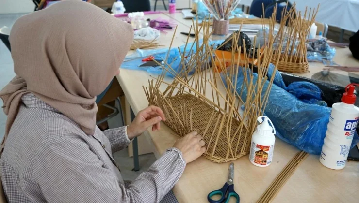 Kahramanmaraş Büyükşehir Belediyesinin kadınlara yönelik geri dönüşüm atölyesinde eğitimler sürüyor. Kadınlar kursta hem sosyalleşme hem de yeni meslek edinme fırsatı buluyor.