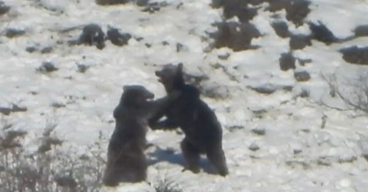 Gümüşhane’de kış ayının gelmesiyle birlikte kış uykusuna yatamayan ayılar kilometrelerce öteden Doğa Koruma ve Milli Parklar (DKMP) Gümüşhane Şube Müdürlüğü ekiplerinin kameralarına yakalandı. Pirahmet Köyü ve Olukdere Köyü arasında bulunan dağlık arazide birbirleriyle oyun oynayan ve güreşen ayıların keyifli anları izleyenleri gülümsetti.