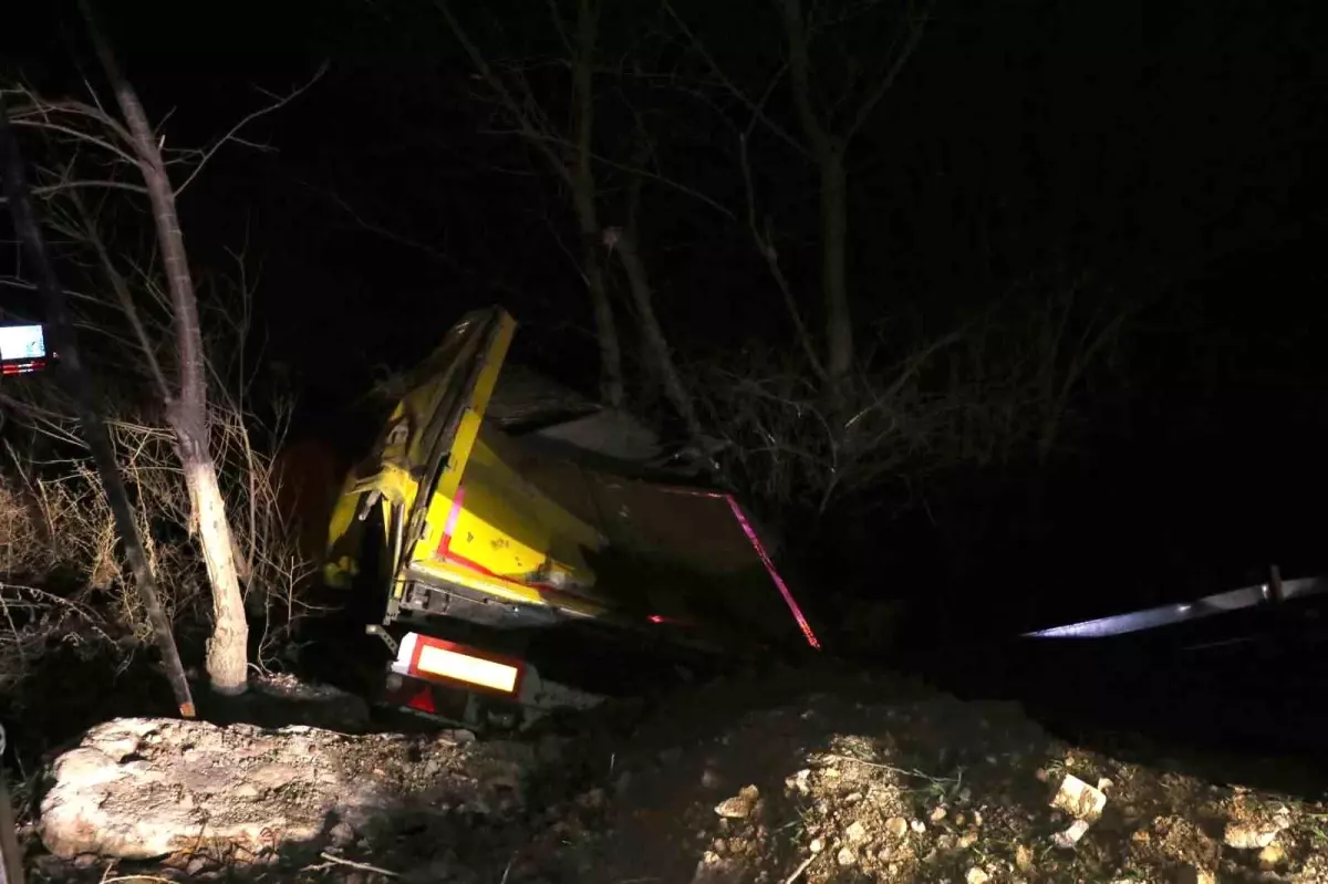 Edinilen bilgiye göre, Mersin’den Samsun yönüne seyir halinde olan Mert Tekeli yönetimindeki 33 AZF 071 plakalı tır, Bekdiğin Mahallesi mevkiinde direksiyon hakimiyetinin kaybedilmesi sonucu kontrolden çıktı. Yoldan çıkan tır, bir süre ilerledikten sonra yol kenarındaki reklam panosuna çarparak uçuruma yuvarlandı.